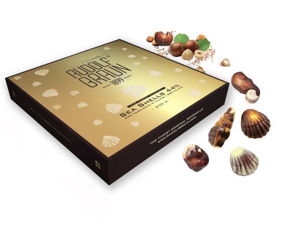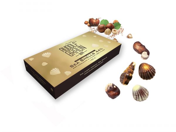 Seashells are popular not only in our country, but also all over the world. And since we are producers of luxury Belgian chocolate and are used to delivering only the best to the market, we have created an original seashells recipe for you with a 44% nut content in the filling. In a beautiful gold package, you will find not only quality, but seashells made with love. We recommend it as a beautiful gift for loved ones or for a formal event.
